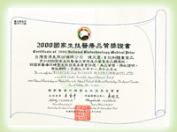 | 1999优良食品评鉴金牌奖 | 2000食品评鉴金牌奖 | 2000国家生技医疗品质奖 | ||