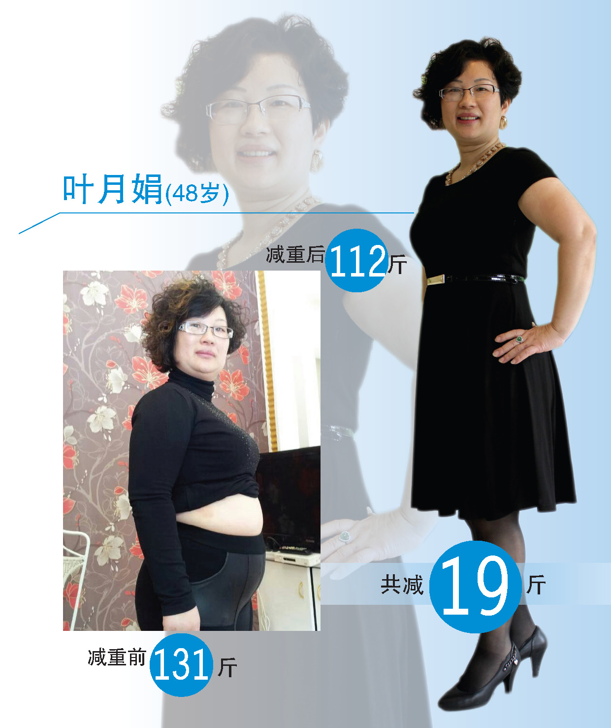 很开心和大家分享我减肥心得,减肥前我是132斤,现在是116斤,一共减了15斤,我是3月5日开始用体美诗产品,经过2个多月的努力,成功减了X斤,现在走路也轻松了,穿衣服也漂亮了,来例假也不胀痛了,以前每个月来例假胸部痛,肚子痛,通过用了体美诗的产品后整个人实现了“三通-肠通、气通、血脉通”,人也舒服了,你们能看出我的年龄吗?我今年48岁了。在这里我特别感谢一个人,是她给我机会,是她让我健康,她就是姿卓美容养生馆老板祺坤姐,谢谢你祺坤姐!感谢所有美容师给我鼓励和帮助,谢谢你们!谢谢体美诗!最后我要特别感谢我老公,他一直在背后默默支持我,给我动力和信心,他说减肥不单止为了美丽,更重要的是为了健康!女为悦已者容,谢谢你老公!