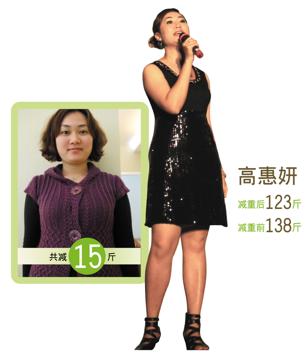 生完小孩子后,身体一直胖,最重试过140斤,出街没自信,经常买不到漂亮的衣服,用过很多减肥方法,什么推脂、爆脂、节食都用过,不是太辛苦就是坚持不下去,还试过喝减肥茶进行减肥,喝减肥茶时肚子会好痛,一整天要上好几次厕所好麻烦,又不好受,体重虽然减小一点点,但不喝体重就会反弹还比之前还要重。当时我对所有的减肥失去信心。直到2011年3月11日,嘉文美容黄靖文小姐和我介绍TBS排毒减重计划,我都是抱着试试的心态参加了,令我意识不到的是整个过程是那么轻松、快乐,青青黄黄的脸色没有了,换来粉红菲菲的脸色,一团团的肥肉没有了,换来S的身材,人也自信了,穿起漂亮的衣服好看好多了,整个人都轻飘飘的。体重从138斤减到现在的123斤,整整轻了15斤,太神奇了,通过这次的学习和体验,我认识了公司的产品是健康、养生,还认识了一班好的朋友!