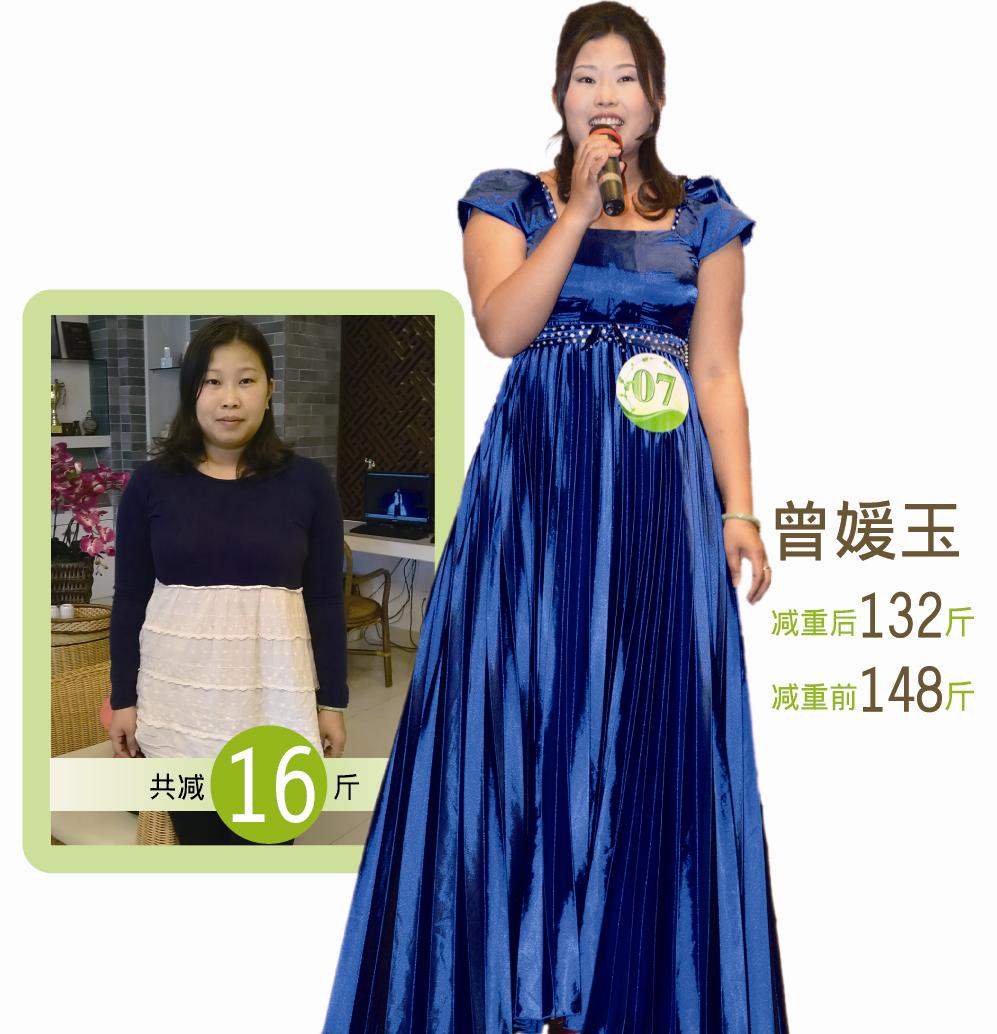我叫曾缓玉,我今年 31 岁,是做财务工作的,以前的我体重的概念没有认识,自从生完小孩后,我的体重就直线上升,由原来的110斤涨到了148斤,每次见朋友都会被问是不是又有小孩了?特别是老公那边的朋友问我,觉得真是很丢人。在以前我也试过其他的减肥方法:喝减肥茶、吃减肥药、针灸也试过,但都没有效果。